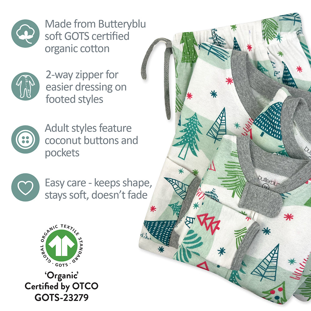 Butterblu Organic Cotton Matching Family Jammies - Holidays Pine Time