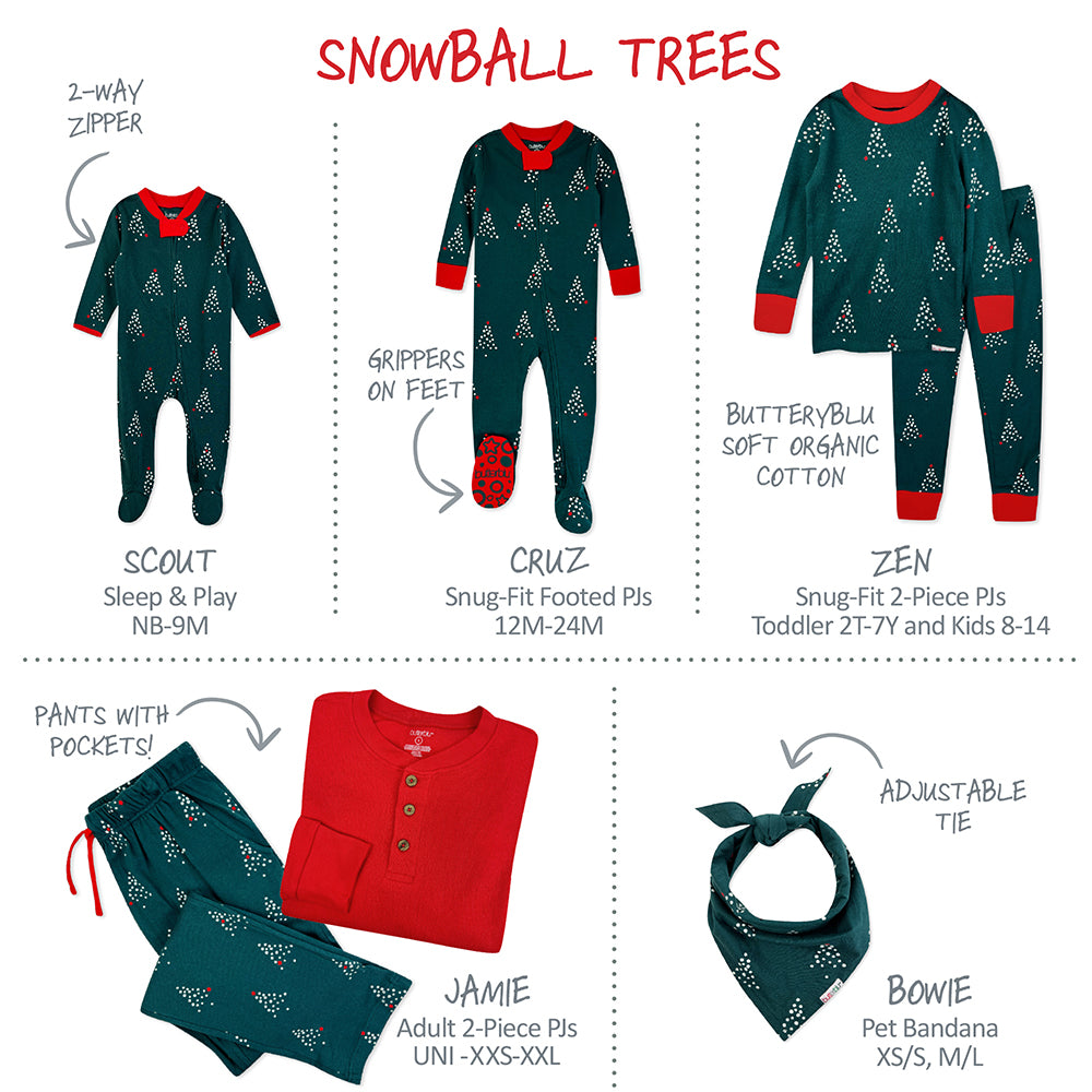 Butterblu Organic Cotton Matching Family Jammies - Snowball Trees